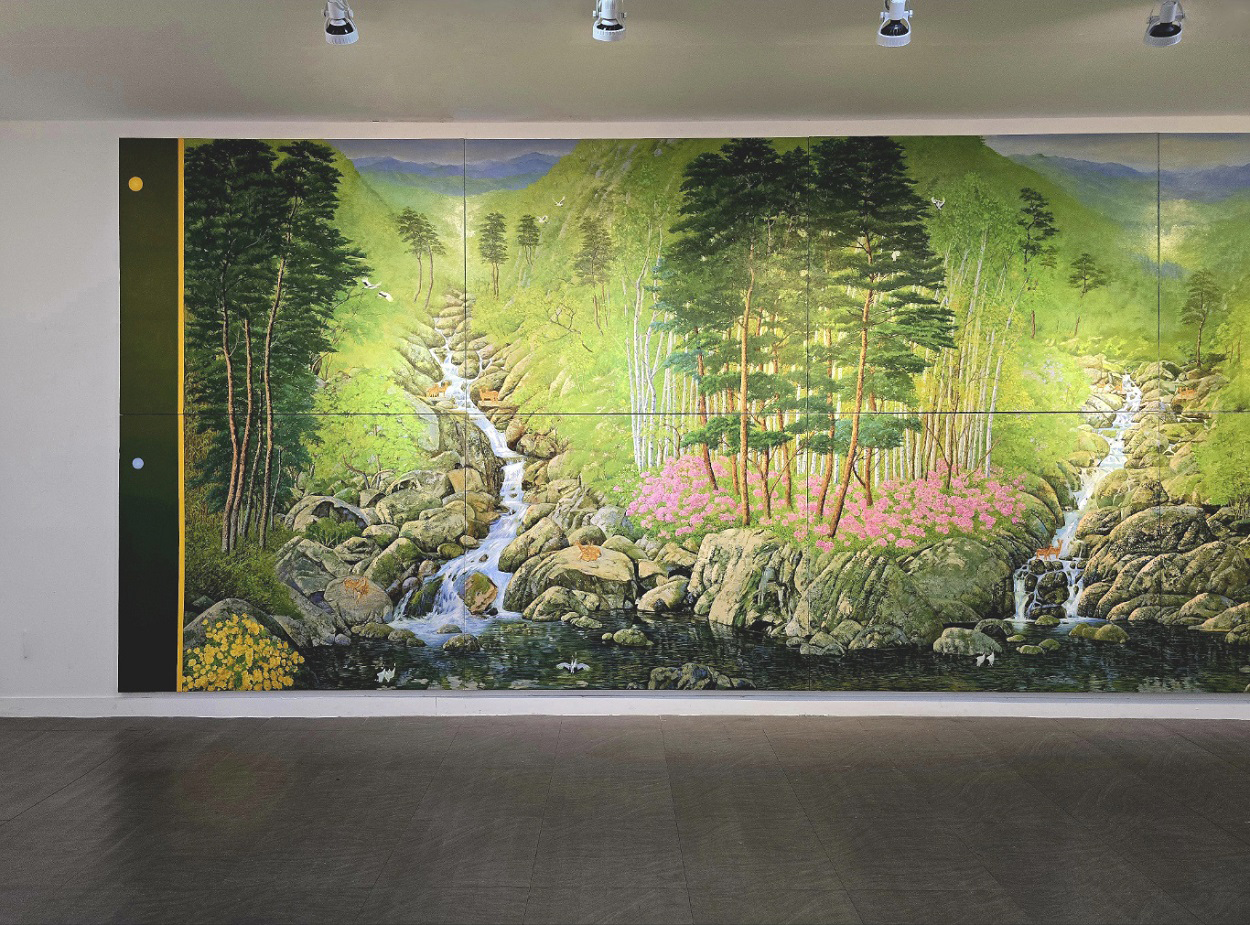 사계절 장생도-봄, 260.6×648㎝(800호), Oil on Canvas, 2023~2024. 오유화 화백이 2년에 걸쳐 완성했다. ‘2024 MIAF(목우아트페어)’에 출품한 전시전경. 사진=권동철.